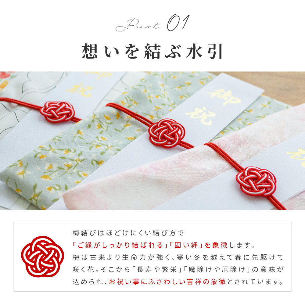 梅結びの水引に想いを込めた、長く喜ばれる実用的なご祝儀袋です。