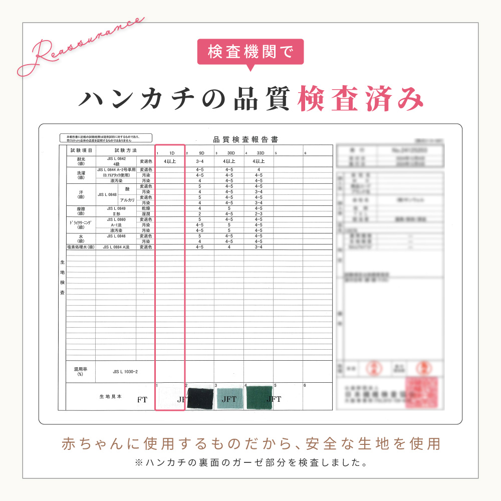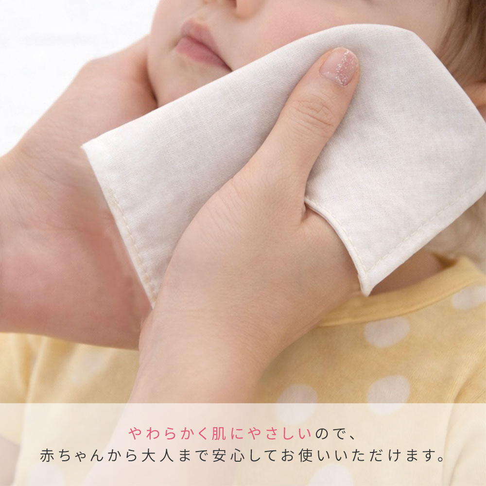 日本製・綿100%のやさしい肌触りで、赤ちゃんにも安心してお使いいただけます。