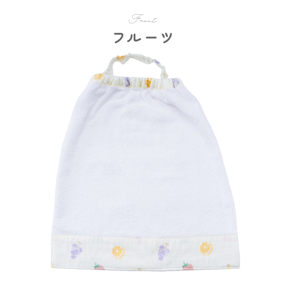 毎日の食事時間を、やさしく支えるタオル素材のエプロン。